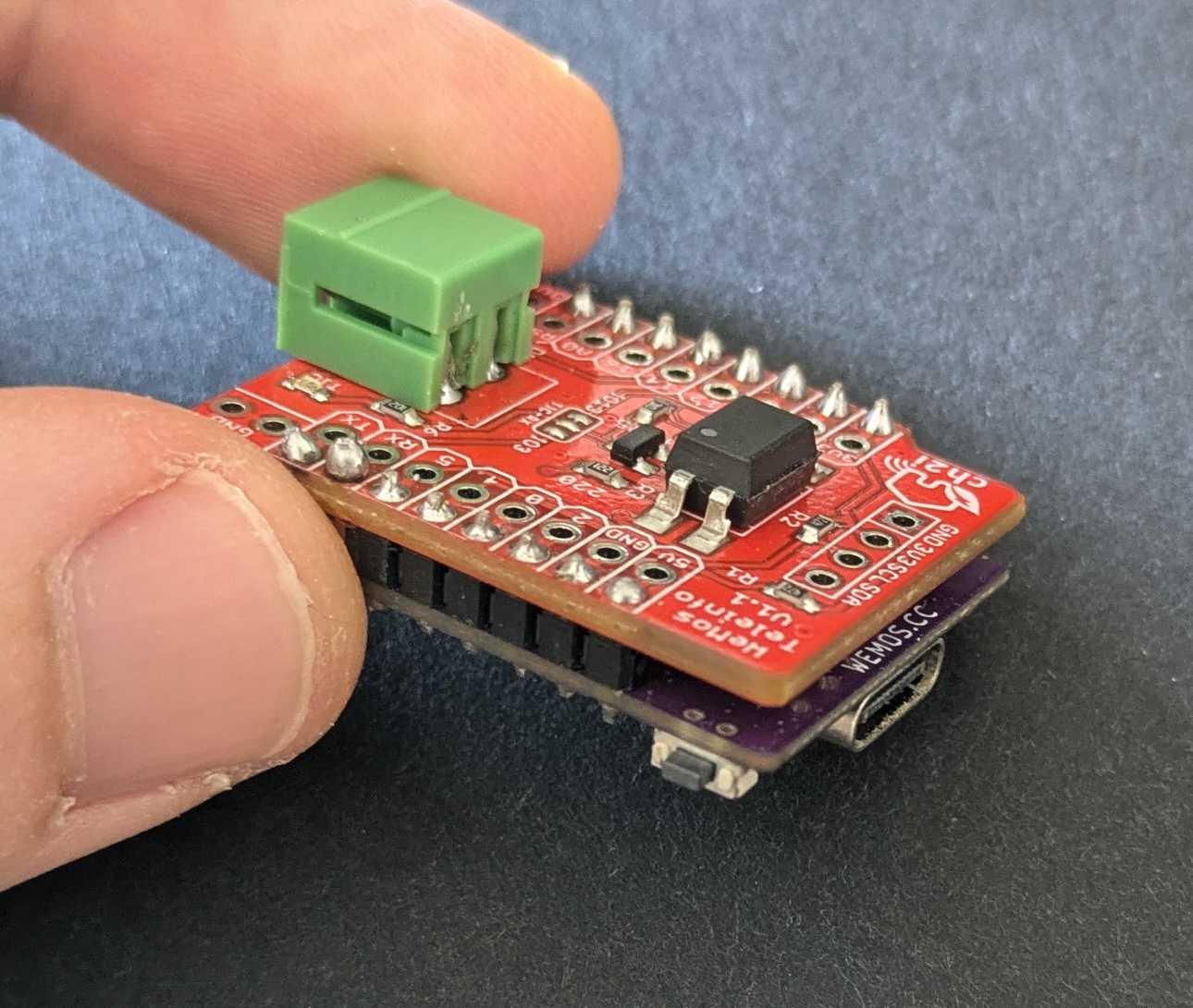 Le shield soudé sur un Wimos S2 Mini.
